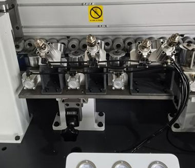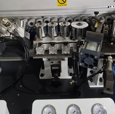 涂膠后經(jīng)過壓貼輪使封邊帶緊貼板面,壓貼力量可調(diào)節(jié) |