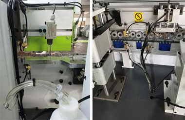 直邊涂膠,前裝烤板燈,在寒冷天氣預(yù)熱板材,使封邊帶和板材之間更好的粘合效果。 |