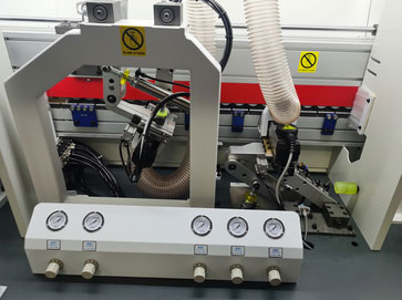 切斷板材兩頭的多余封邊帶(氣缸帶2個(gè)調(diào)壓閥1個(gè)泄壓閥)氣壓更穩(wěn)定,齊頭齊尾更穩(wěn)定.  |