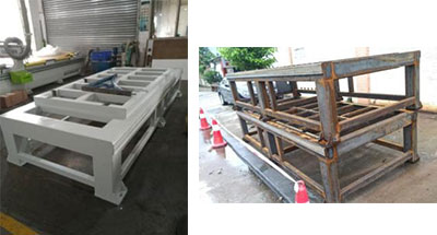 采用方鋼焊接,回火處理,消除焊接應(yīng)力,保證使用多年后不會(huì)變形。床身加強(qiáng)筋比較密集,增加了床身強(qiáng)度,保證底板不變形。 |