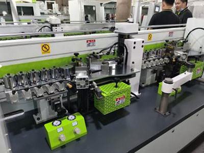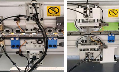 切斷板材兩頭的多余封邊帶(氣缸帶2個(gè)調(diào)壓閥1個(gè)泄壓閥)氣壓更穩(wěn)定,齊頭齊尾更穩(wěn)定 |