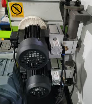 氣動拋光布輪快速對封邊條邊緣進行拋光打磨,更圓滑更漂亮。拋光電機氣動進出,拋光輪使用面積更大,拋光效果更好 |
