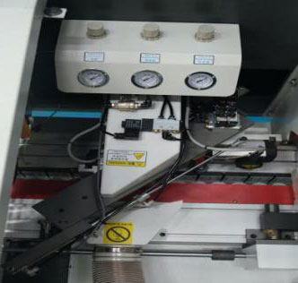 切斷板材兩頭的多余封邊帶(氣缸帶2個(gè)調(diào)壓閥1個(gè)泄壓閥)氣壓更穩(wěn)定,齊頭齊尾更穩(wěn)定 |